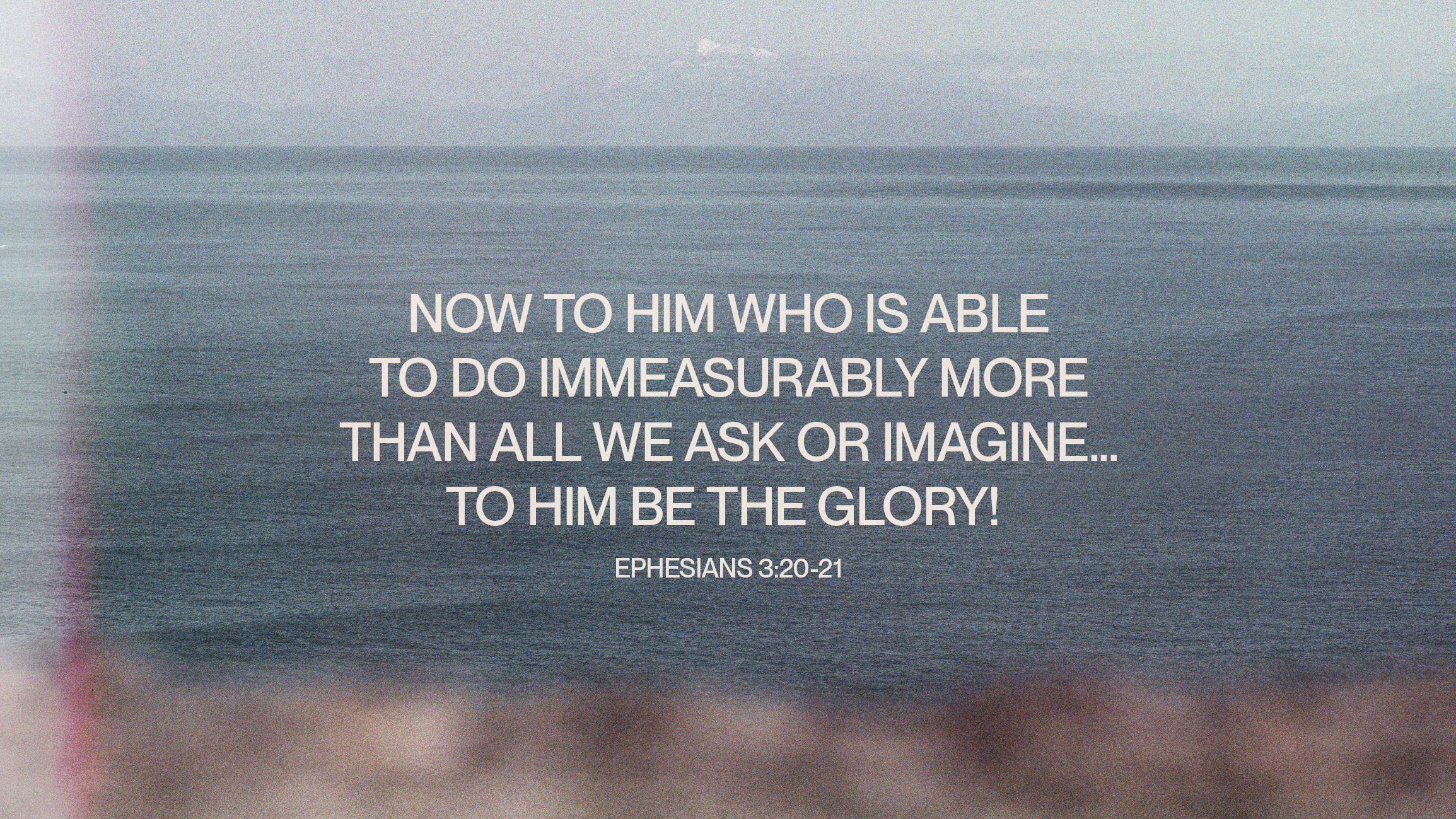 “Now to Him who is able to do immeasurably more than all we ask or imagine…to Him be the glory.” Ephesians 3:20-21